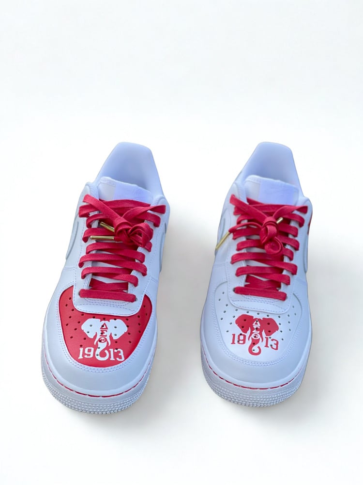 Designed with legacy in mind, each pair features carefully placed custom accents that honor Delta Sigma Theta’s storied heritage, blending symbolism with luxury craftsmanship. The classic Air Force 1 structure ensures timeless wearability, while the bold red elements make a confident, unmistakable statement.